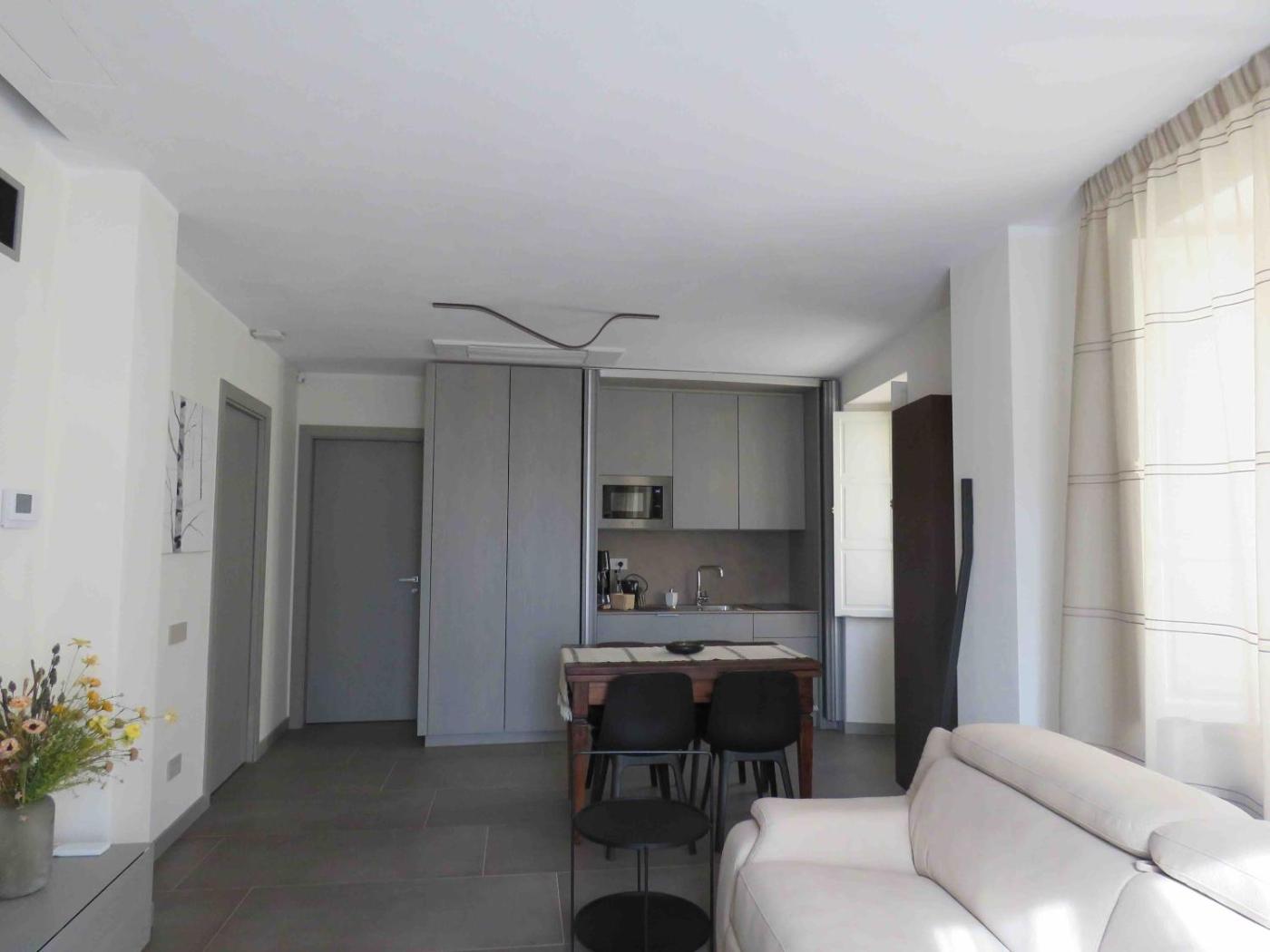 Appartamento con 1 Camera da Letto. Boasting a private entrance, this air-conditioned apartment includes 1 living room, 1 separate bedroom and 1 bathroom with a shower and a bidet. Meals can be prepared in the well-fitted kitchen, which is fitted with a stovetop, a refrigerator, kitchenware and a microwave. This apartment has a coffee machine, flat-screen TV, mountain views, as well as winechampagne for guests. The unit has 2 beds.
