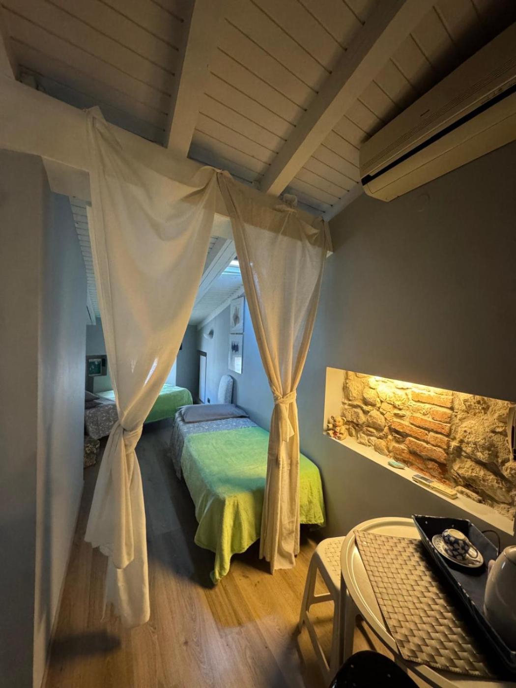 Camera Quadrupla. Featuring free toiletries, this quadruple room includes a private bathroom with a shower, a bidet and a hairdryer. The air-conditioned quadruple room features a flat-screen TV, a tea and coffee maker, a wardrobe, parquet floors as well as a quiet street view. The unit has 3 beds.