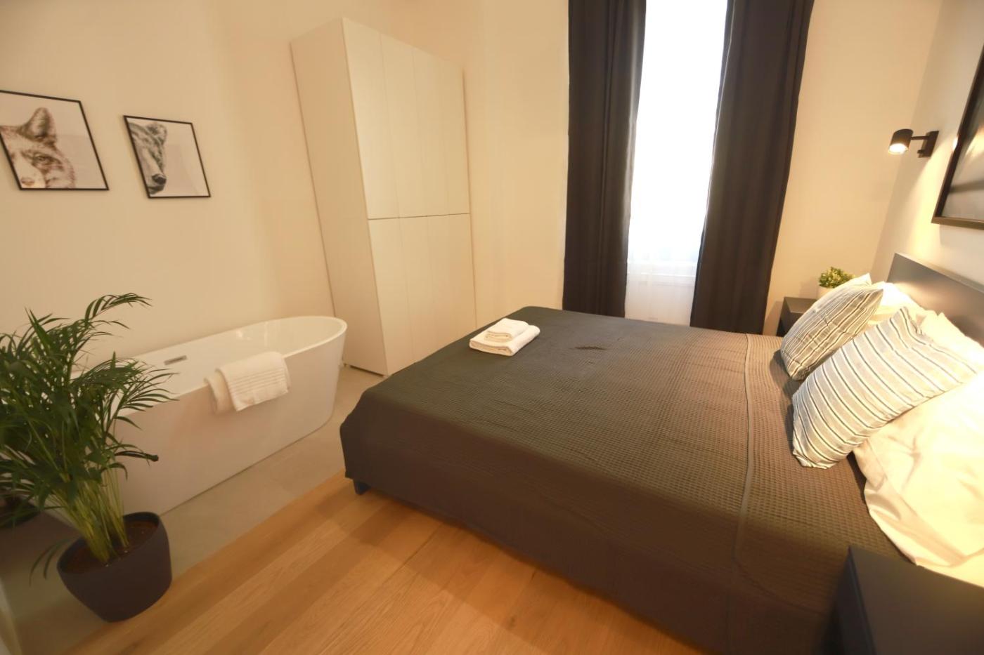 Appartamento Superior con 1 Camera da Letto. The air-conditioned apartment has 1 bedroom and 1 bathroom with a bath and a shower. In the well-equipped kitchen, guests will find a stovetop, a refrigerator, a dishwasher and kitchenware. The apartment features parquet floors, a seating area with a flat-screen TV, soundproof walls, a tea and coffee maker as well as city views. The unit has 1 bed.